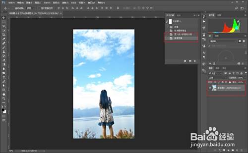 将人物素材拖进ps里,ctrl+t自由变换,将图像布满画布