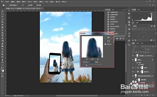 然后手部有点太过清晰,显得比较突兀,于是将该图层转为智能对象以后,执行滤镜-模糊-方框模糊,半径1个像素就可以了
