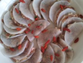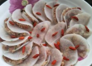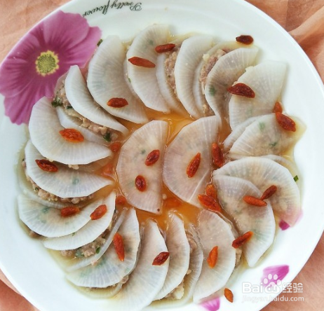 肉馅蒸白萝卜一道造型美观、口感鲜嫩的蒸菜。
