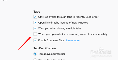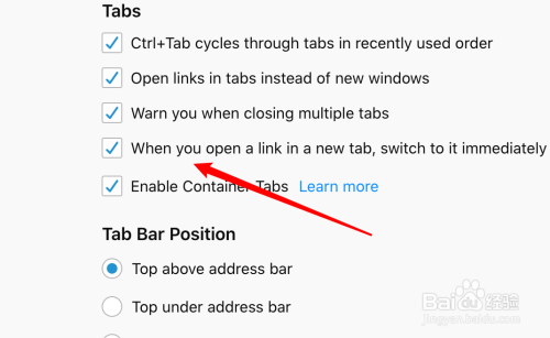 找到‘When you open a link in a new tab, switch to it immediately’选项。