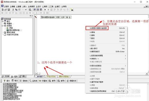 选择声音或者图片资源表选项卡,在空白区域右键点击,在弹出的菜单中选择第一项,新建一个资源