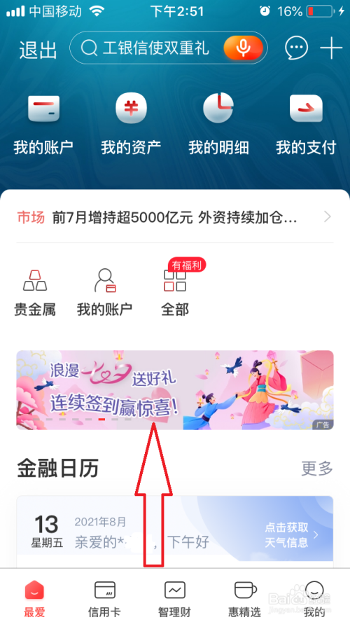 如何参加工行浪漫七夕送好礼连续签到赢惊喜活动?详细参加活动步骤演示如下。