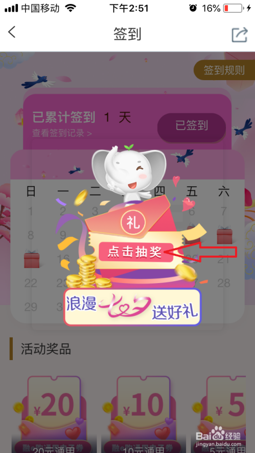 在弹出的以下窗口中点击【点击抽奖】即可抽奖。