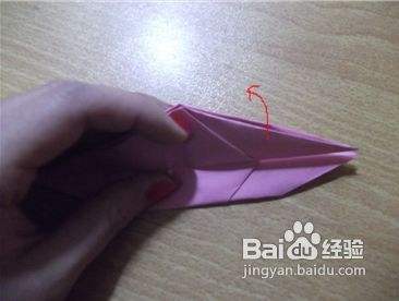 沿着折痕朝里折,如图所示,后面做同样处理。