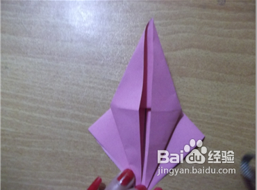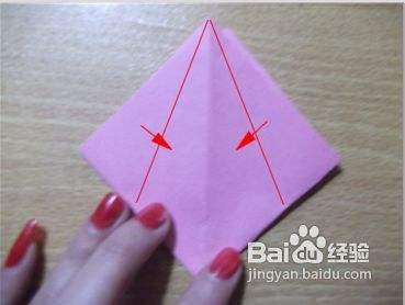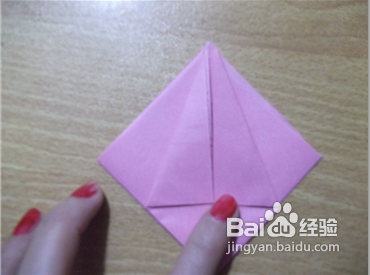 呈一个三角形,如图,再从上边将三角形撑开,呈一个小正方形。
