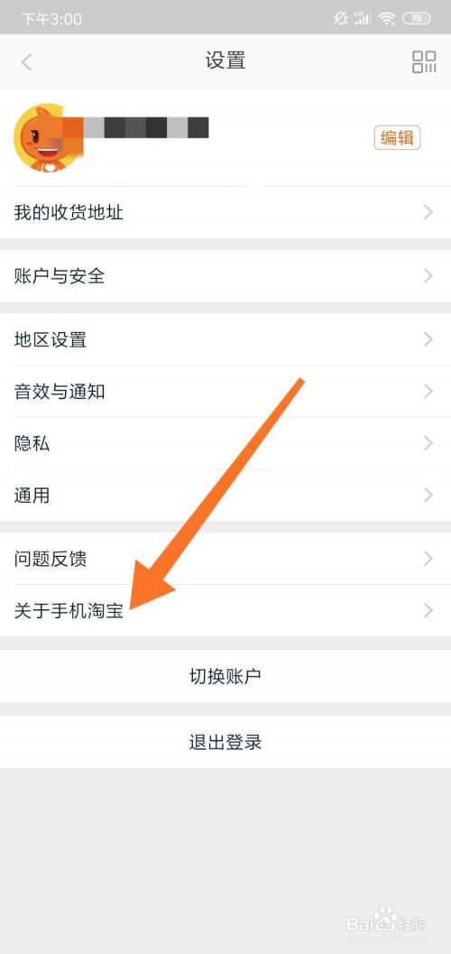 3、进入设置页面,点击底部的“关于手机淘宝”;