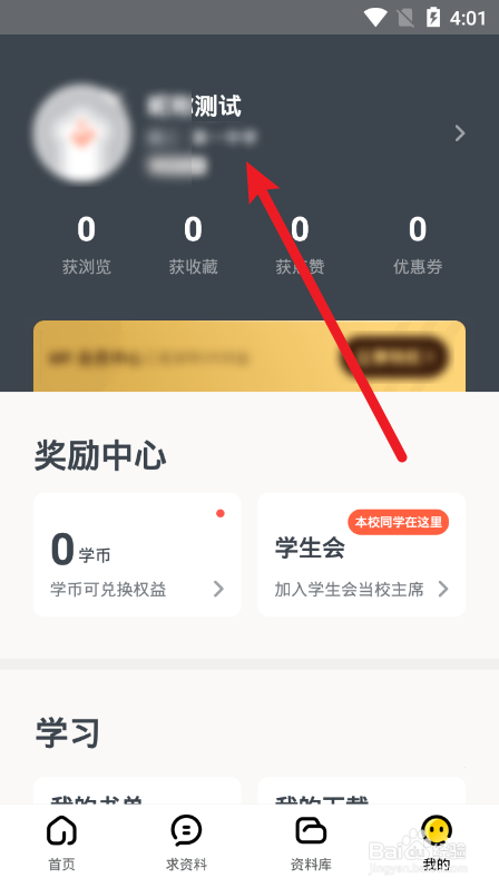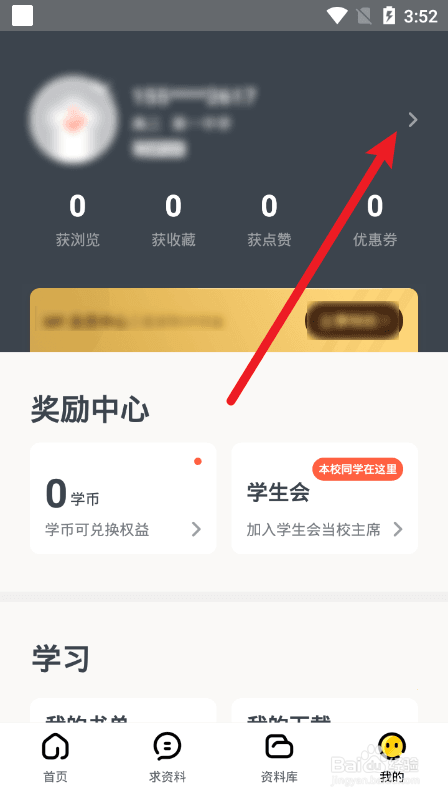 在“我的”界面中,点击“向右图标”打开个人主页。(如图所示)