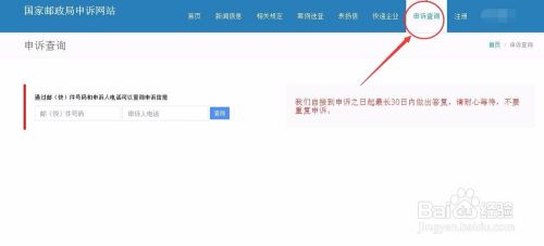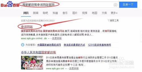 百度搜索国家邮政局申诉网站官网,找到官网后,并点击进入。