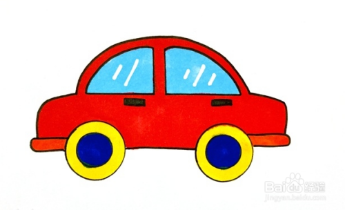把车玻璃涂成蓝色,车轮外侧涂成黄色,车轮内侧涂成深蓝色。