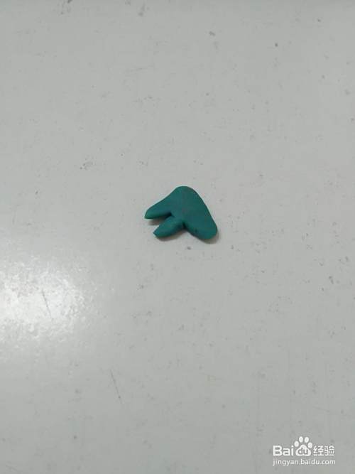 先用蓝色彩泥捏一个长方形小条,然后从中间折一下,当作它的头和脖子。