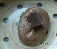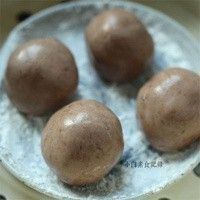取一份揉成球,压成饼,放入一块巧克力,包裹住,整形揉成球(如果巧克力的形状太方,不好包,可以将一小块巧克力掰成小块后再包)