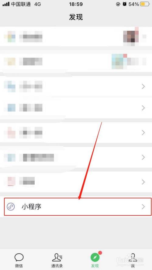 以同样的方式获取到银行卡的收款码之后,回到我们的微信中,点击发现中的【小程序】