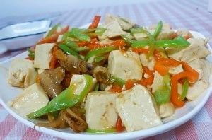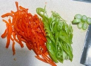 碗里倒入生抽,蚝油,淀粉,水,倒入锅中勾芡,放青红椒丝,翻炒2分钟出锅。