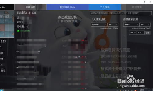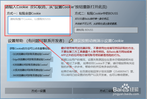 使用百度经验个人助手的第一步需要设置cookie,这一步相对比较难,每个浏览器获取cookie的方式不一样,如何使谷歌浏览器,可以搜索 谷歌浏览器怎么获取百度经验的cookie 或者 获取百度经验cookie 多搜索一下就会有答案