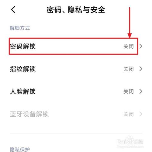 确定后,“密码解锁”后面显示“关闭”代表关闭成功。