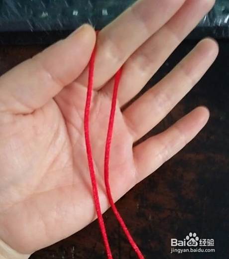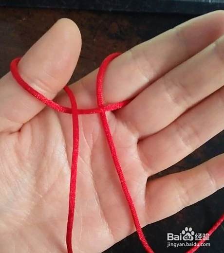 我们先准备一根红绳,把红绳取中间挂在左手的食指上。