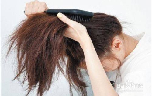 低下头,一手托住头发,一手用梳子将头发从脑后往前梳。