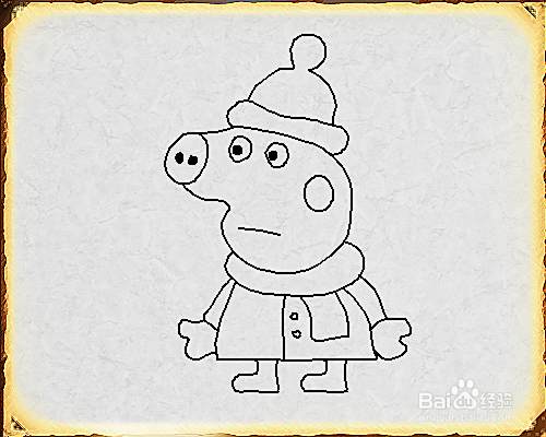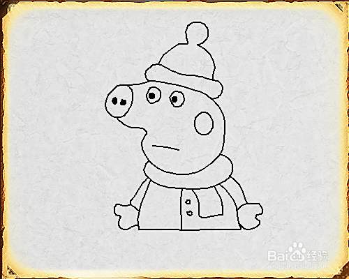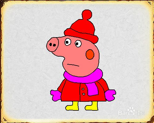 这是绘制好的带帽子和围巾的小猪佩奇。