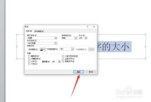 对大小选项的数值进行更改,将数值改大(数值越大文字就越大,数值越小文字就越小)