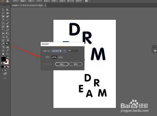 》工具栏选择“混合工具”,点击Enter 键,输入数值为300(仅作参考)