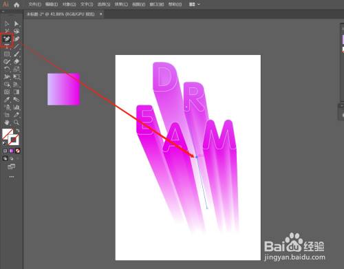 》双击上面的文字,改变颜色,用吸管工具,吸取旁边的渐变色,加上白色描边