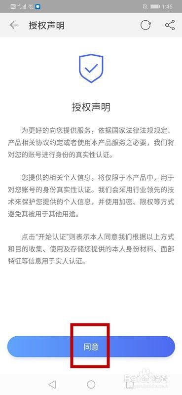 开始认证,同意【授权声明】