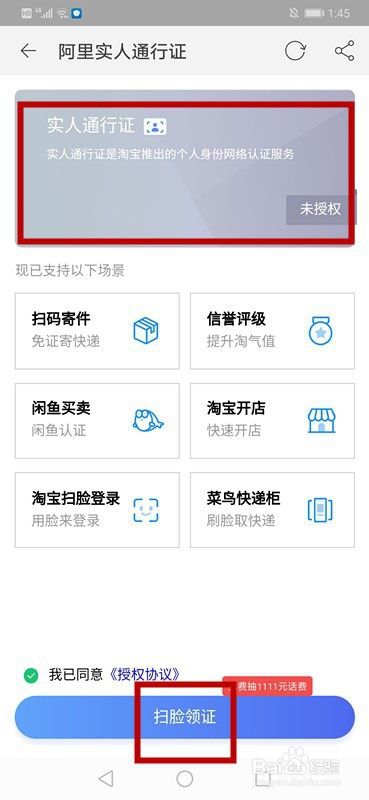 同意【授权协议】,进行【扫脸认证】