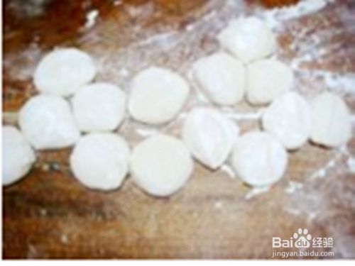 将和好的面从盆里抄在案板上,反复揉,根据面的软硬情况适当垫入干面,反复多盘几次,搓条,下成15克重的面剂,擀成边薄中间厚的薄片,包入20克重的馅,捏18~21个褶。