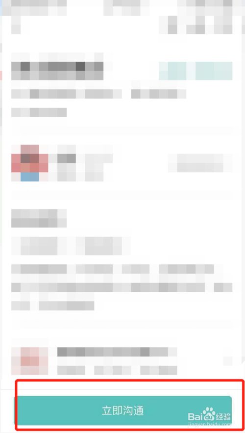 在工作职位详情界面点击下方的“立即沟通”;