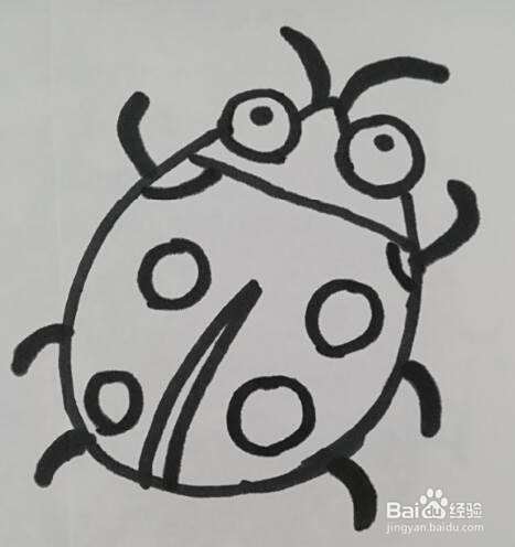 第一步,如图所示,先画出七星瓢虫的眼睛