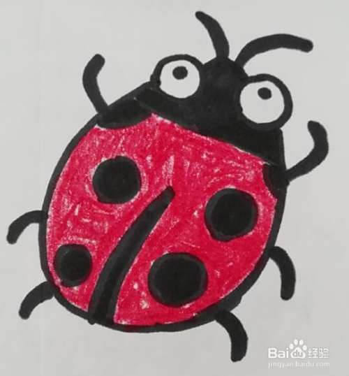 最后一步,如图所示,给七星瓢虫的涂上颜色,完成。