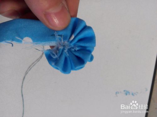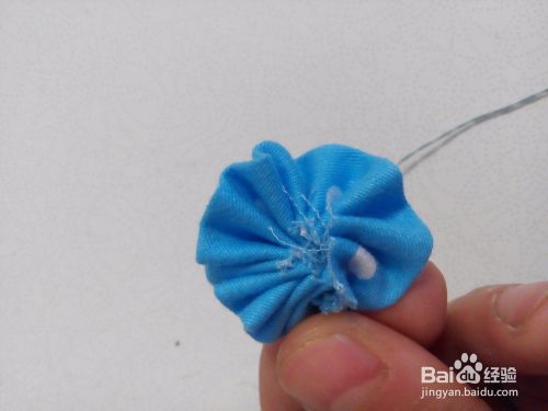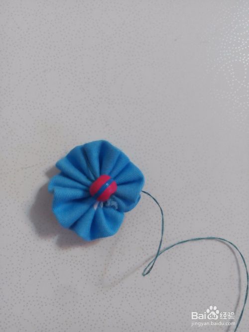 穿一颗彩色珠子放在布花中间,不仅起到装饰作用,还可以将中间不整齐的地方遮挡起来。一朵美丽的布花就完成啦!