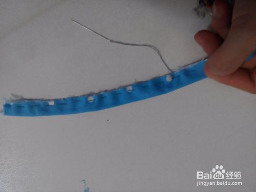 把剪下的布条对折,用针缝起来,针脚不要太密了。