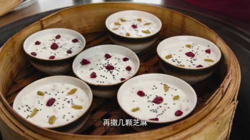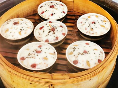 7加入自己喜爱的果脯,等水烧开后,中火蒸30分钟