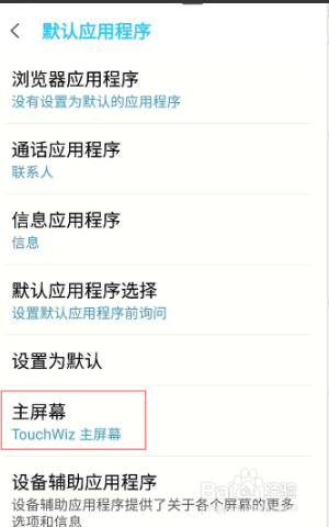 进入默认应用程序列表后,选择主屏幕选项,进入相应页面。