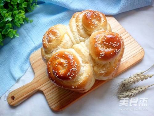 9放入烤箱,选择发酵功能,30分钟。发酵好后从烤箱拿出,刷全蛋液,撒芝麻。烤箱选择上下管170度预热。