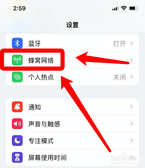 点开苹果手机设置,进入“蜂窝网络”界面。