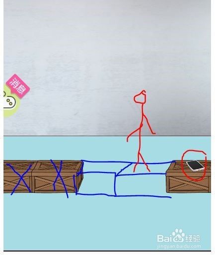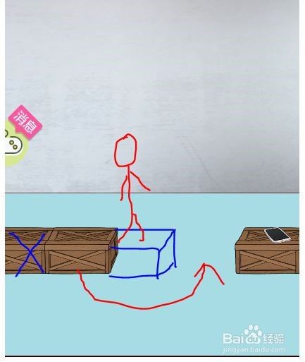 男孩刚刚岔躲走过第一个箱子的时候,立即点击第一个箱子,箱子到物品栏中