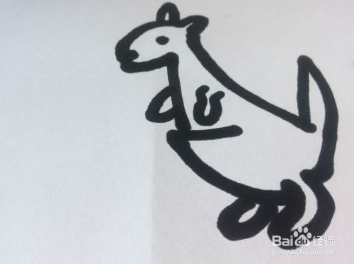 在袋鼠的身体下方,画出袋鼠的育儿袋。