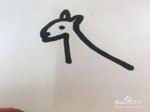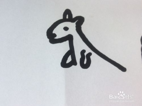 在袋鼠的头部右侧画出大鼠的眼睛。在右上侧画出袋鼠的两只耳朵。