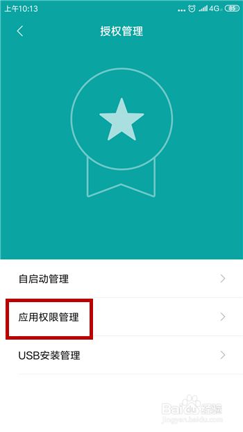 然后在授权管理功能中找到【应用权限管理】并点击。