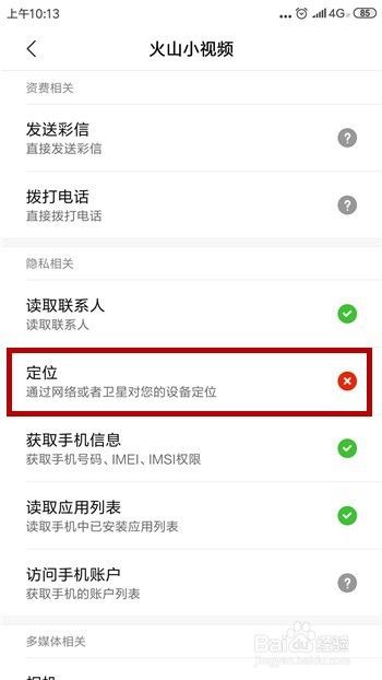 观察火山小视频的定位授权是否是关闭的,如果是就打开该定位授权。