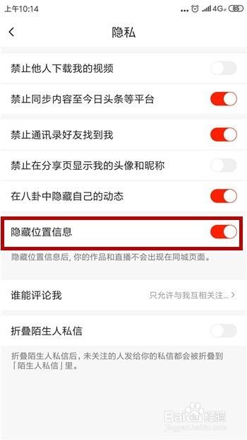 然后在隐私里找到【位置隐藏】,观察这个是否打开了,如果是则关闭这个功能,两个都设置好即可。