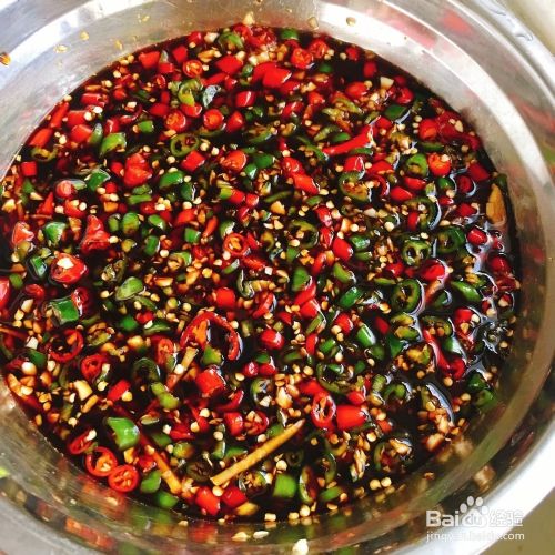 里面加生抽、醋、蚝油,具体加多少根据你们的米椒和线椒来决定,醋和生抽1:1 量没过米椒线椒和蒜末即可。味道可以调整