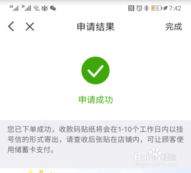 点击后,页面会显示申请成功,这时就可以等待1-10个工作日就可以收到收款码。