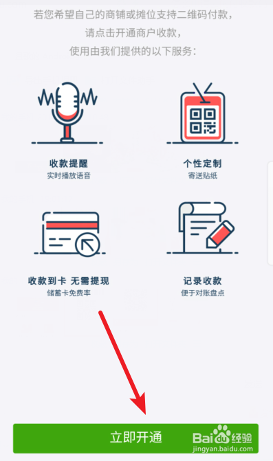 点击进入后,页面会给出云闪付商户收款的介绍,我们点击下方的立即开通。