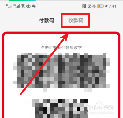 点击后,会展示自己的付款码,这时我们点击上方的收款码进行切换。