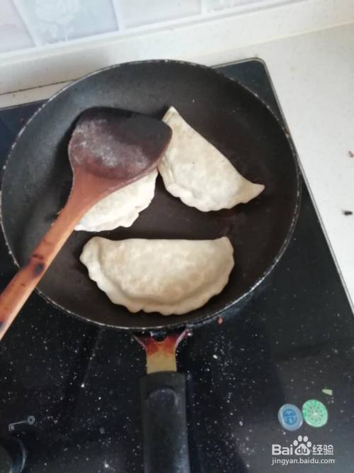 每面不要烙太长时间,不然会糊,当看见有汁水从韭菜盒子里流出,说明快好了。