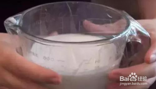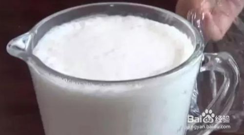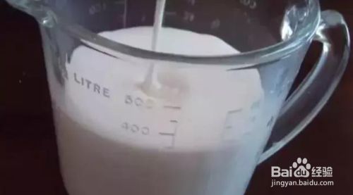 将面液放到30度左右(不烫手即可),放入半茶匙酵母,搅拌均匀后,倒入量杯中,这是为了观察面液的发酵程度,而且量杯的尖嘴方便倒出。当然也可以用其它容器。