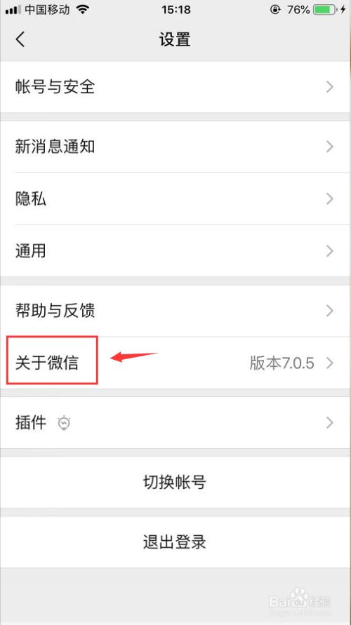 然后在设置页面里打开 关于微信,如下图